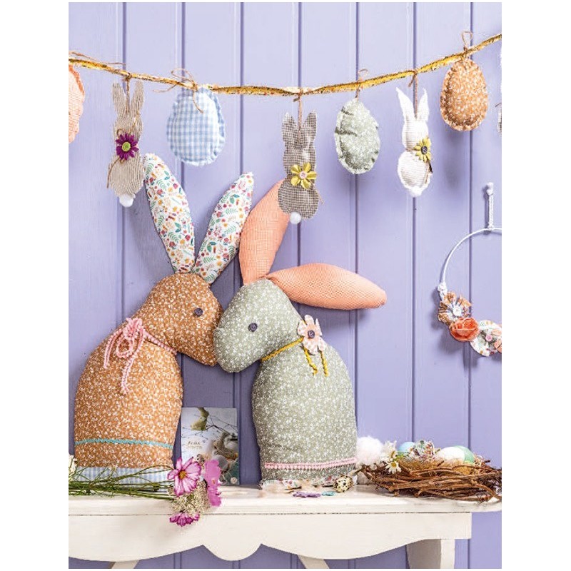 Świat zaczyna się kręcić wokół zajączka i koszyczka, bo Wielkanoc jest coraz bliżej. Zajączki zobaczymy w roli kapturków na jajka, jako dekoracje obrączek do serwetek, ich wesołe pyszczki są serwetką, a na makramie znajdziemy dumnie prezentowany ogonek. Figurki zakochanych zajączków można uszyć, a z resztek tkanin powstaną małe zajączki oraz jajka - zawieszone na przemian na sznurku utworzą girlandę. Te urwisy postanowiły udawać pisanki - w tej roli też czują się świetnie.