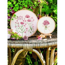 Pole do popisu dla haftujących krzyżykami: łąkowe kwiaty na tamborkach, opasce, wazonie.