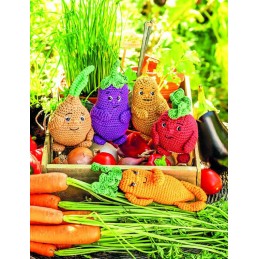 W kuchni tym razem królują warzywa: jedne ze specjalnej włóczki gąbkowej, inne to pełnowymiarowe figurki cebulki, ziemniaczka, marchewki, bakłażana, pomidora – każda z detalami!