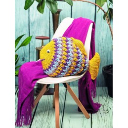 Wśród kolejnych „morskich” dekoracji: dziergane morsy, ryba w roli poduszki, szydełkowane z włóczki chenille plecak-krab i breloczek krabik.