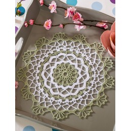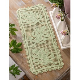 Znajdziecie więc ażurowe biało-zielone serwetki, siatkowy komplet z liściem monstery (serwetka i 2 bieżniki), kolorowe stylizowane róże – projekt tak , pomyślano, by można je było niemalże dowolnie powiększyć lub zmniejszyć.