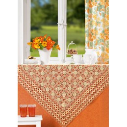 Wśród motywów zdobniczych są żaglowce, egzotyczne owoce i tukany, swojskie róże i serca. Obrus z serwetek w kształcie kwiatka to kolejna ciekawa propozycja, a dla tych z was, które chcą gotowy obrus z tkaniny ozdobić bordiurą – skromna falista plisa lub oszałamiająca plisa z różami – wybór trudny, ale zawsze wzbudzi uznanie.