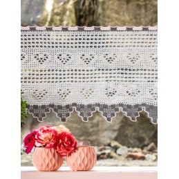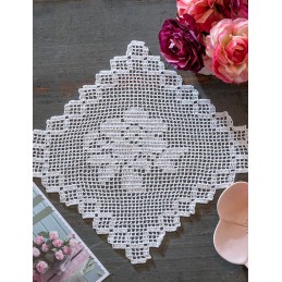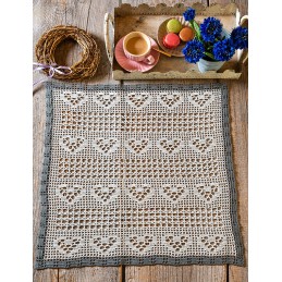 Siatkowe serwetki z różą, firanka z serduszkami i z ząbkami na brzegu (w komplecie można zrobić kwadratową serwetkę lub długi wąski bieżnik), a może coś bardziej skomplikowanego: bieżnik z motylami i kwiatami: symetryczny, powstały z obróconych kwadratów, o mocno profilowanych brzegach?