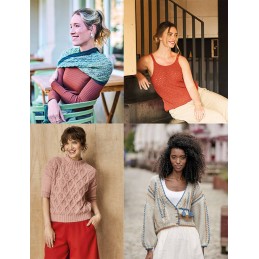 Swetry z krótkim rękawem, topy na ramiączkach, bluzki z okrągłym karczkiem, we wzory żakardowe kwiatowe i geometryczne. Na jesień: sweter z kapturem, krótki kardigan w „indiańskim” stylu z chwostami i haftowanymi szlaczkami , a także dodatki: komin jak wstęga Moebiusa, bajeczne skarpetki, szal. Może też polubisz kamizelkę: specjalnie dla niego powstała zapinana na guziki kamizelka z kieszeniami i małym szalowym kołnierzykiem, zrobiona z melanżowej włóczki, z pionowym układem rombowych reliefów. Dla niej: stonowana narzutka – we wzór jodełki, bez zapięcia.