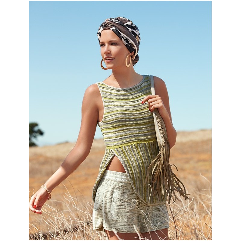 Zaczynamy jednak od łatwych modeli, ale mimo to z ciekawymi detalami, np. topu w stylu safari lub kimonowej bluzki z „podartym” przodem. Niektóre z prezentowanych dzianin mogą powstać dosłownie na ostatnią chwilę przed wyjazdem na urlop!